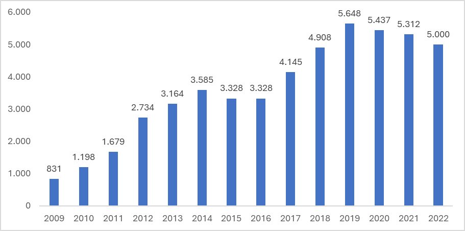 A key role in the presence of Chinese interests in the global port industry has been China Cosco Shipping. The national shipping company which was founded as a state-owned enterprise in 1961, established its first international presence in the late 1980s and became the first Chinese company to be enrolled as a member of the World Economic Forum in 2000, has invested in several ports around the globe. The linkages of the leading liner shipping company with one of the three alliances (ONE) transporting containers should not be underestimated, as allowing a carrier to participate in a container terminal is one of the best guarantees to attract vessel calls and volumes to the ports. Today, together with China Merchants Port, which is another Chinese maritime financial group, the share of the world’s total capacity corresponds to approximately 24% of the TEUs handled by container ports annually.